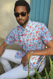 A super soft cotton light blue shirt with short sleeves and orange lobster & shell print.More in this Collection