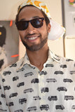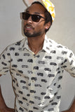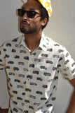 All aboard for Cafe Cuba written on the Vw's, Havana bound!Cream & charcoal print on cotton fabric.Limited edition only.