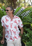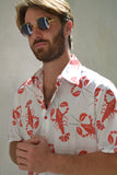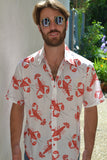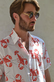 A Shoop favourite.. large red lobsters crawling over a soft white cotton with red & white buttons. Available with long or short sleeves. A great summer shirt!