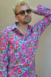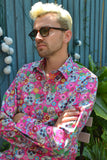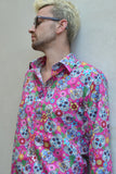 A hot, deep pink cotton fabric covered in the glitziest & most glamorous of skulls and flowers. Regular cut. Available in SHORT sleeves only.Limited edition.