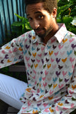 Our very popular new rooster shirt with long sleeves.This is a very light summer cotton and great fun.